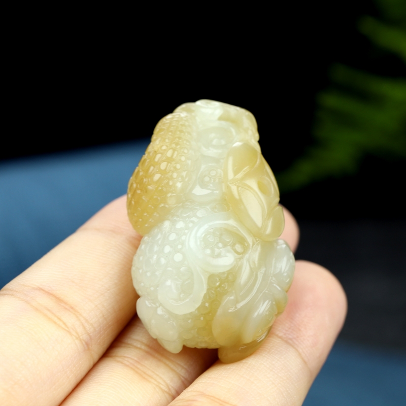 福瓜谐音“福挂”,将其戴在身上,就是把福气挂在身上,是喜庆的好兆头。 寓意福气连绵,事事如意。钱币寓意财源滚滚。福瓜和钱币放在一起寓意福财双全。