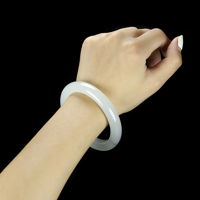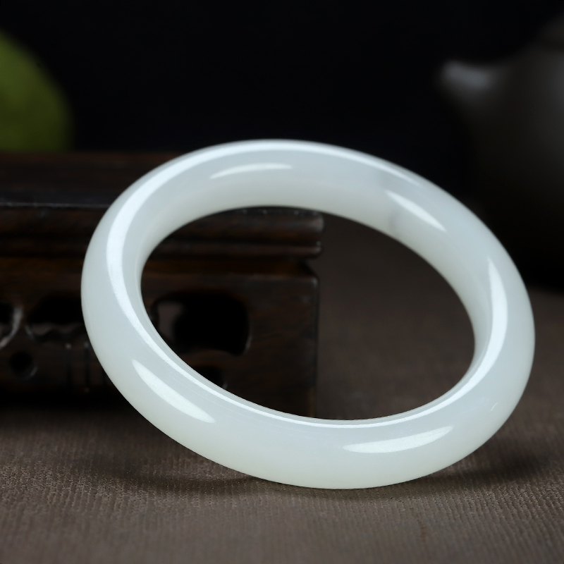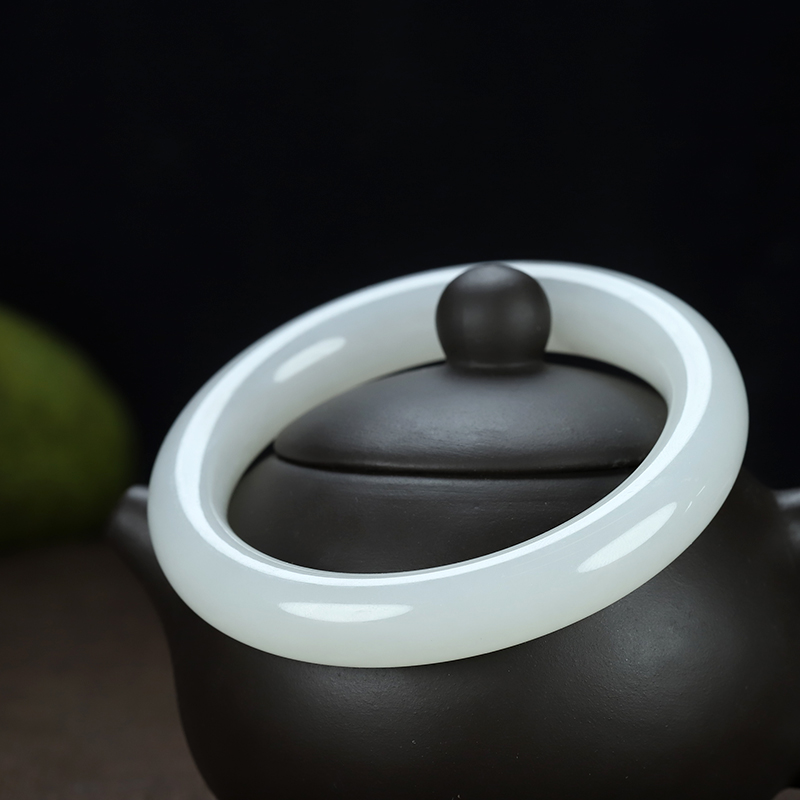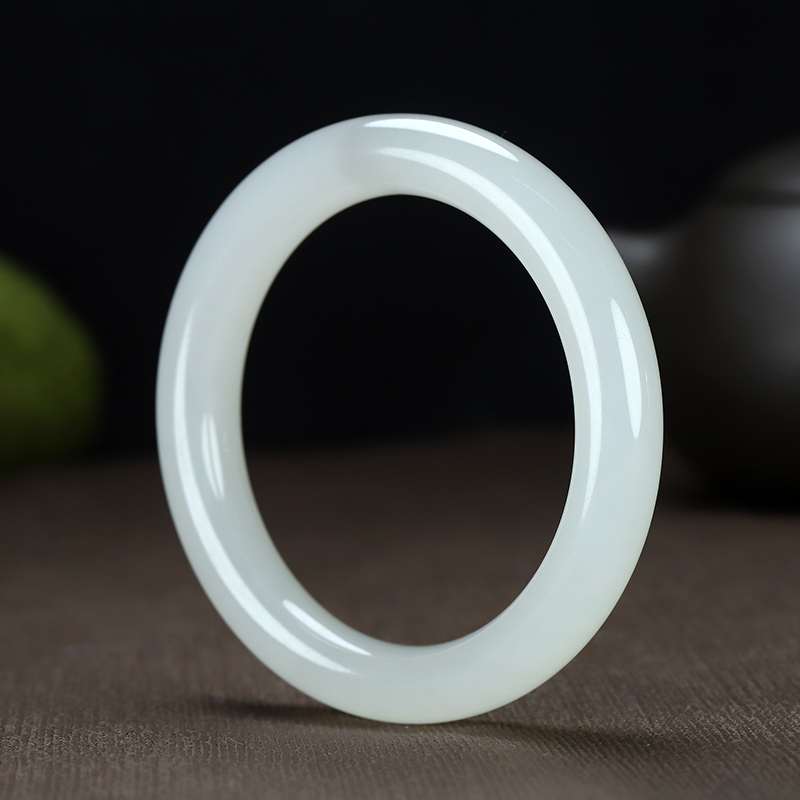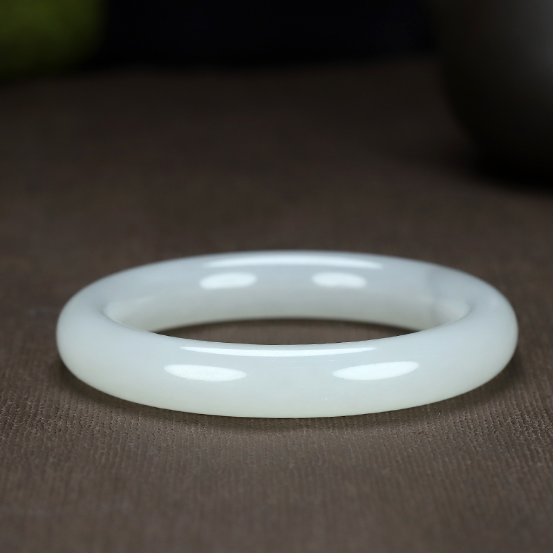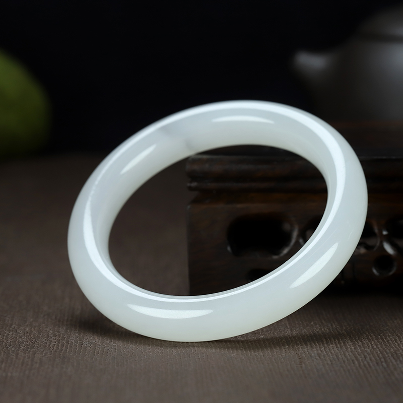 和田玉手镯,温润内敛,玉质细腻,润如凝脂,高贵清雅,柔婉生香。