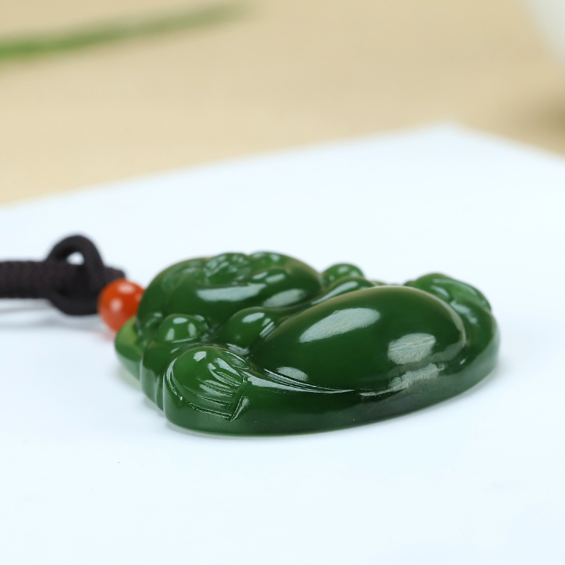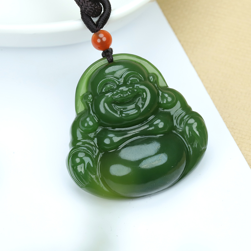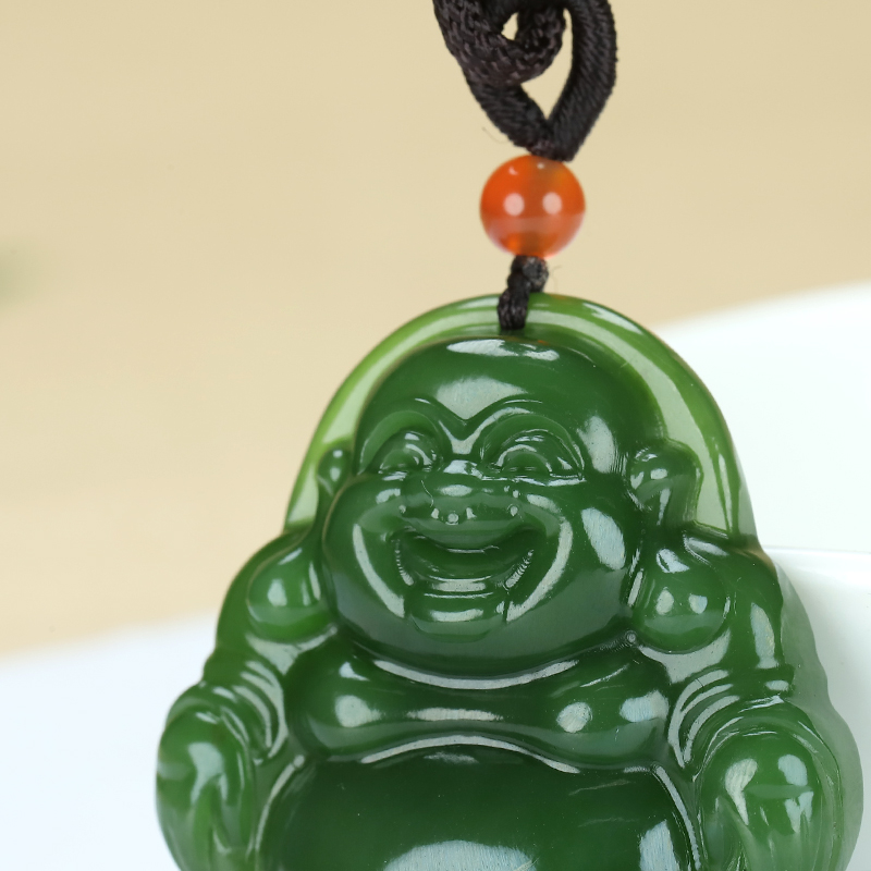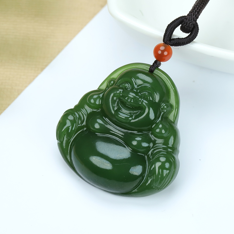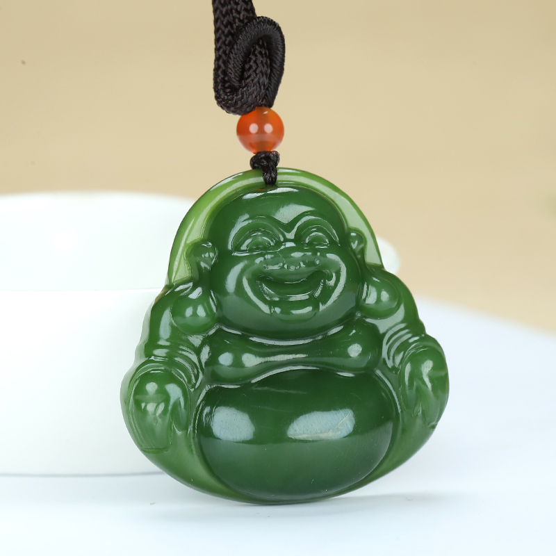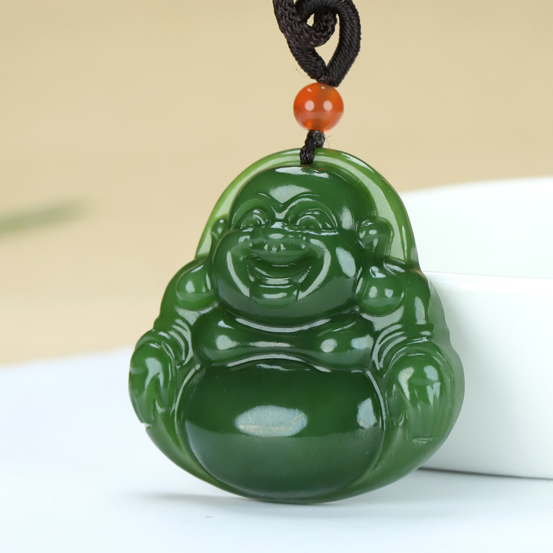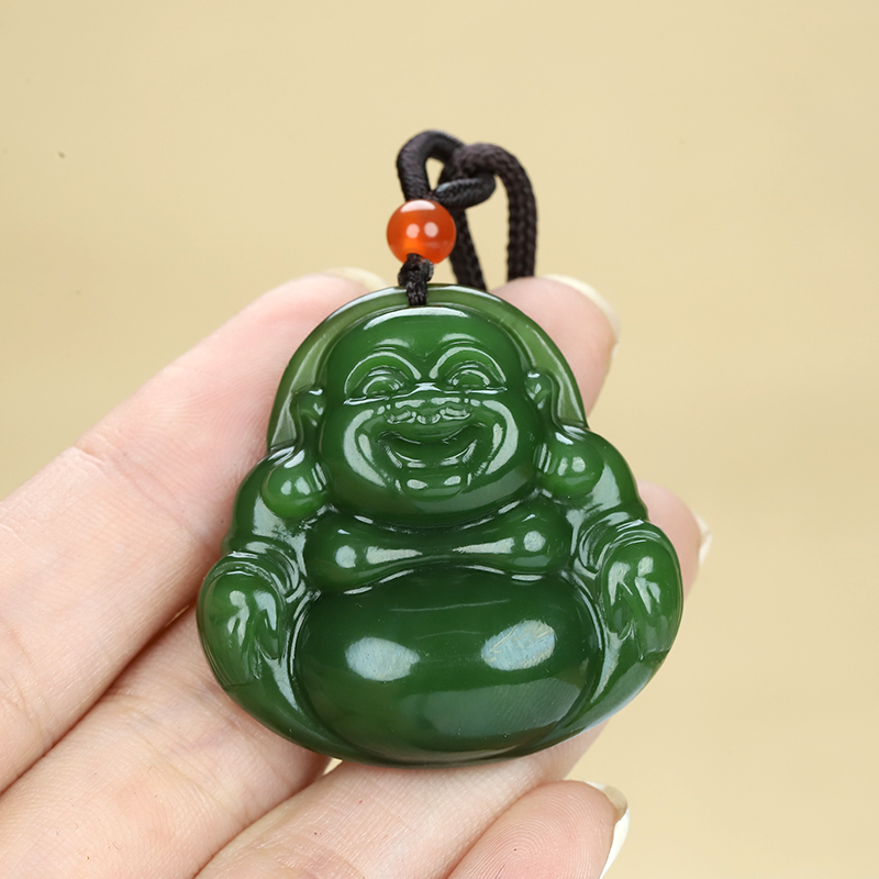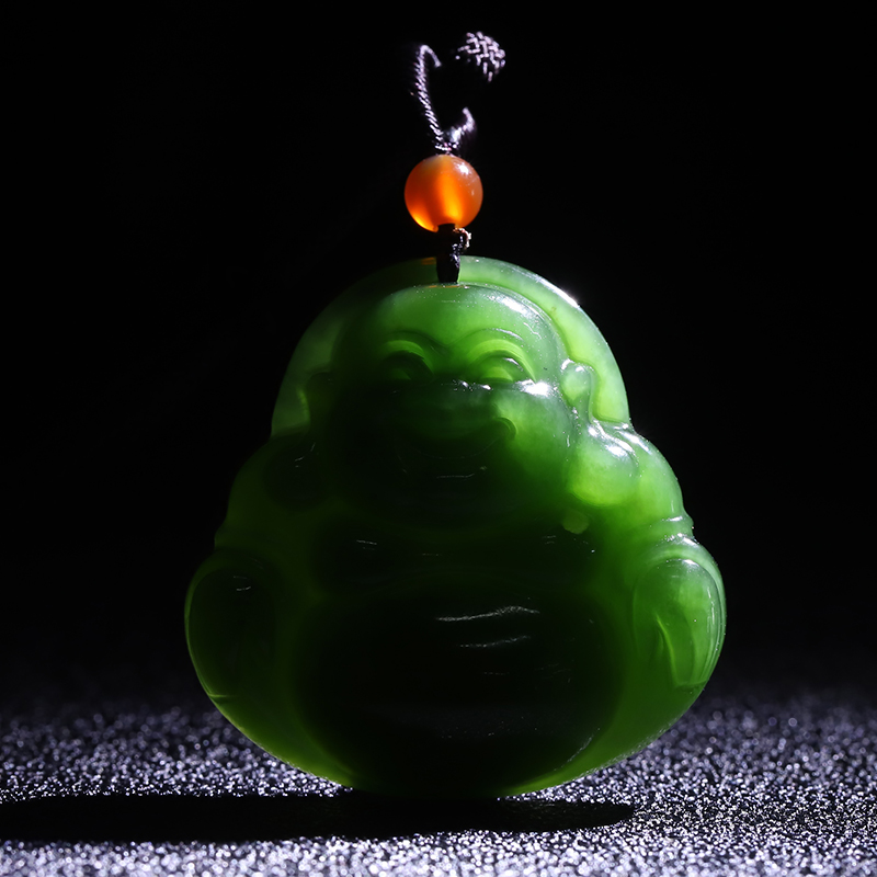 【弥勒笑佛】精品和田玉碧玉挂件。玉质温润细腻 油性十足 雕工精湛。
